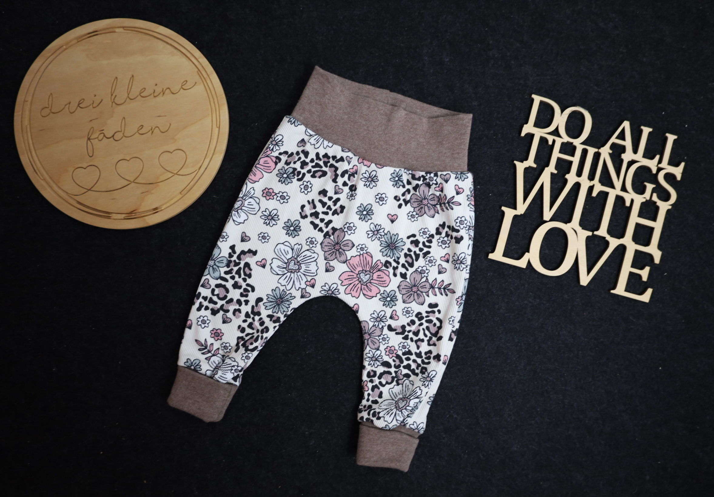 Süße Pumphose mit Leostyle und Blumen Gr. 68