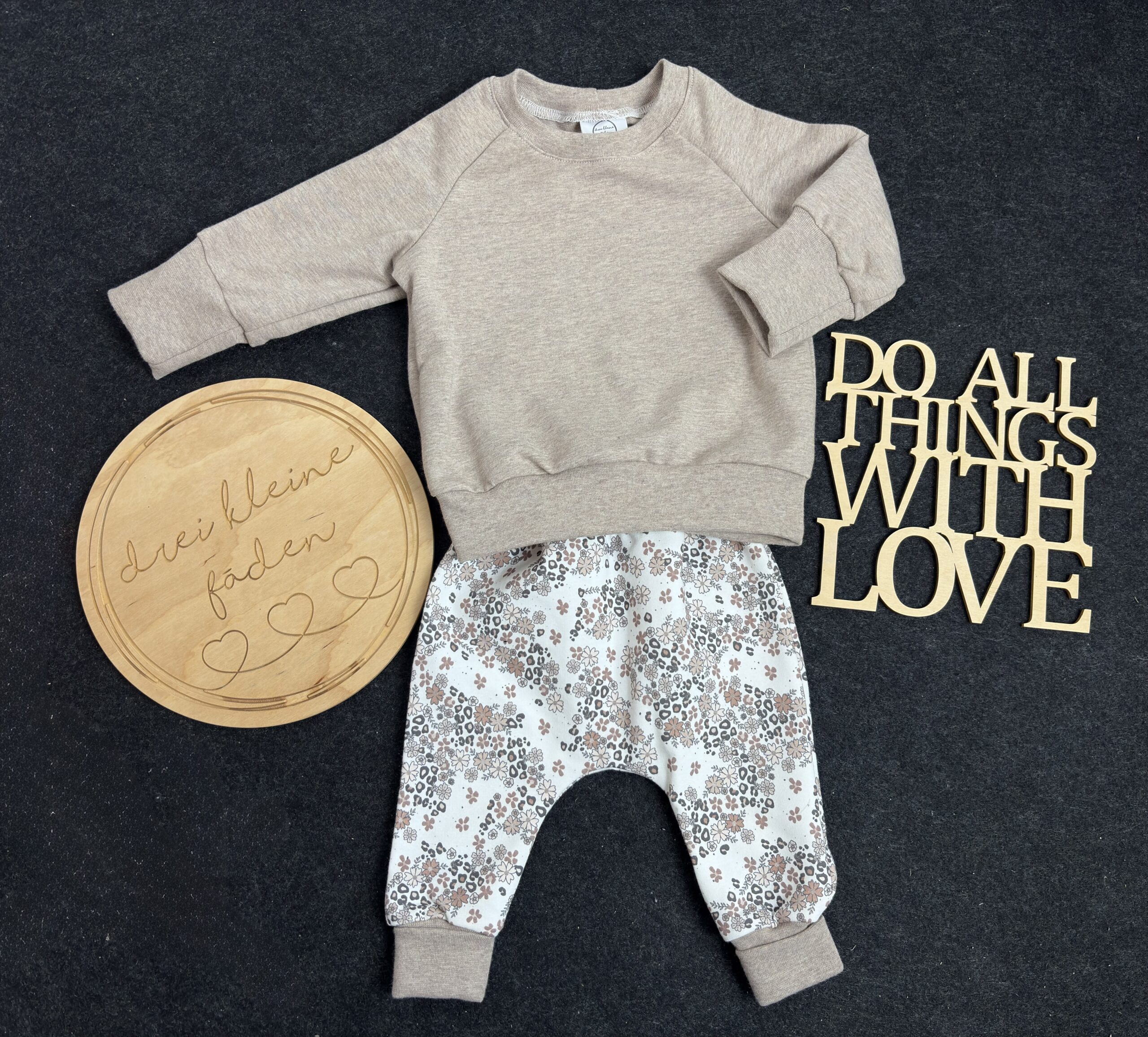 Diese bezaubernde Set in Blumen-Leo-Style ist ein echtes Lieblingsstück für kleine Babys. Das niedliche Motiv macht das Set zu einem liebevollen Hingucker und sorgt garantiert für strahlende Augen. Durch die natürlichen Farben lässt sich die Hose aber auch der Sweater super mit anderen Farben kombinieren.